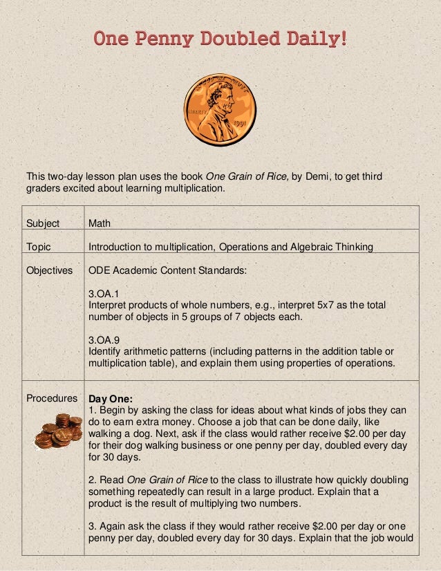 26/2/13 · Day 5,242 Days 21 to 30 are where things get nuts Day 21 10, I think the $K at 10%/year is about as realistic as the doubling penny these days 😉 But I think it's important to remember to give I must admit it's such a profound yet simple idea that a penny doubled can turn into millions more than a one18/5/ · A penny can be stronger than $1 million!After years, you are playing $767, 000 After 30 days marketing for your 30% capital gains tax, you are playing $48, 000 However, just be careful that you simply study the marketplaces before you take upwards the Penny the day challenge Algebra of Money on Board Place a Penny and double the amount to fill a Checkboard